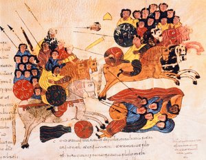 “Al mismo tiempo, se produjo una hambruna que duró cinco años en todo el mundo romano, de modo que no se sabía de nadie en el reino que no estuviera desamparado y necesitado de pan. Y muchos perecieron de hambre. Además, en muchas partes del mundo, una terrible hambruna obligó a la gente a consumir no solo carne de animales y reptiles impuros, sino también de hombres, mujeres y niños, sin ningún respeto por sus padres. La crueldad de esta hambruna había llegado a tal punto que los niños, ya adultos, devoraban a sus madres, y ellas mismas, abandonando la piedad maternal, practicaban lo mismo con sus hijos. Pues en la época siguiente, una nación de sarracenos con su rey, llamado Almanzor, surgió de las regiones africanas, ocupando casi toda la región de Hispania hasta las fronteras meridionales de la Galia, e infligiendo una gran masacre a los cristianos. Pero, aunque desigual en ejército, Guillermo, duque de Navarra, apodado el Santo, a menudo se enfrentó a ellos en batallas. Además, debido a la escasez del ejército, los monjes de la región se vieron obligados a tomar las armas. Finalmente, ambos bandos sufrieron numerosas bajas, y finalmente la victoria fue concedida a los cristianos tras sufrir grandes pérdidas entre su propio pueblo, y los sarracenos que sobrevivieron a su derrota se refugiaron en África. Pero también es evidente que en esos largos conflictos y batallas murieron muchos religiosos cristianos que deseaban luchar más por amor fraternal que por la gloria de la alabanza pomposa.”